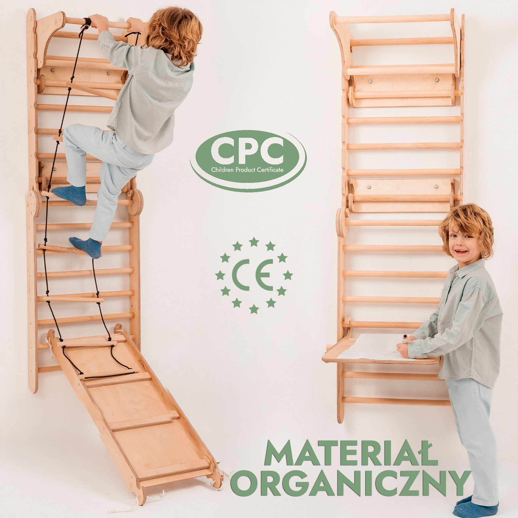 Ściana szwedzka Goodevas to idealne rozwiązanie dla aktywnego rozwoju Twojego dziecka w domu. Wykonana z mocnego, naturalnego drewna, pokryta organicznymi, bezpiecznymi dla dzieci materiałami i ręcznie polerowana na gładką powierzchnię, nadaje się dla dzieci w wieku od 1 do 7 lat — a nawet starszych! Wspinanie się, rozciąganie i wieszanie na drążkach wspiera rozwój fizyczny, wzmacnia mięśnie i poprawia koordynację, zamieniając czas zabawy w przyjemną i zdrową codzienną rutynę.