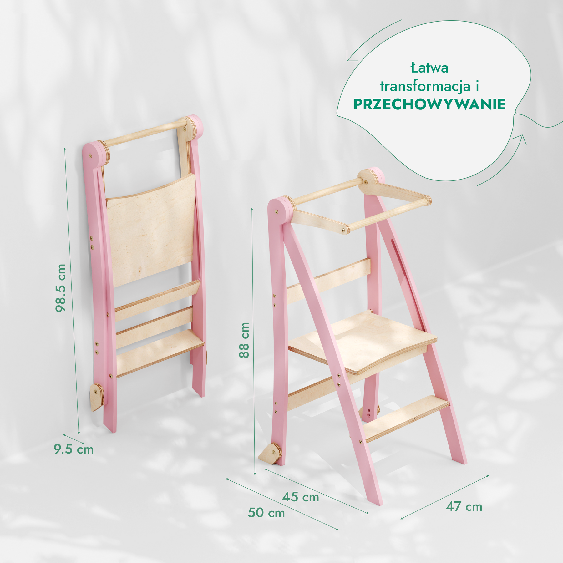 Stworzona z myślą o zapracowanych rodzicach i aktywnych małych odkrywcach, nasza składana podestka dla maluchów zapewnia maksymalną wygodę i praktyczność. Niezależnie od tego, czy potrzebujesz dodatkowej przestrzeni, czy szybkiego rozstawienia, ten inteligentny projekt sprawia, że przechowywanie i użytkowanie są wyjątkowo łatwe.