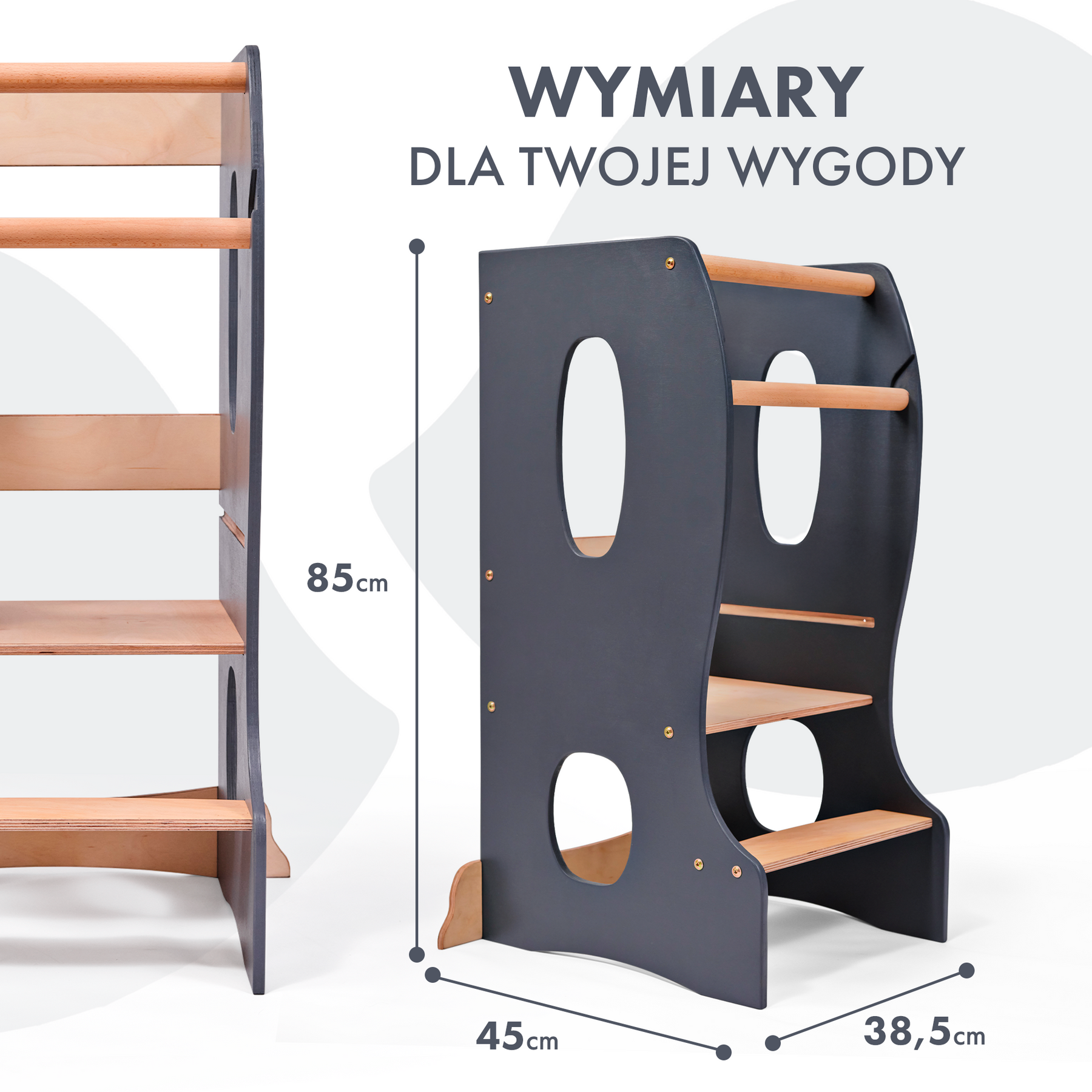 • Podest kuchenny Montessori: niezbędna pomoc w kuchni. Kolor: szary Wieża Montessori