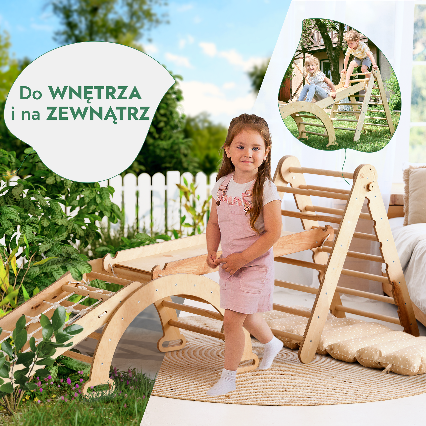 Podaruj swojemu dziecku szansę na rozwijanie równowagi, koordynacji i zdolności motorycznych w radosny i angażujący sposób.Nasz zestaw wspinaczkowy Montessori zawiera podstawowe elementy: bujający łuk, trójkątną drabinkę, dwustronną zjeżdżalnię ze stopniami oraz wiele dodatkowych akcesoriów.Ten wszechstronny zestaw zamienia aktywną zabawę w potężne narzędzie rozwoju.